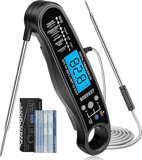 ![review [2022 New] 2 in 1 Instant Read Meat Thermometer for Cooking, Fast & Precise Digital Food Thermometer with Backlight, Magnet, and Dual Foldable Probe for Kitchen Oven, Deep Fry, BBQ, Grill (Black)](https://m.media-amazon.com/images/I/81U8YtlHpPL._AC_SL1500_.jpg)