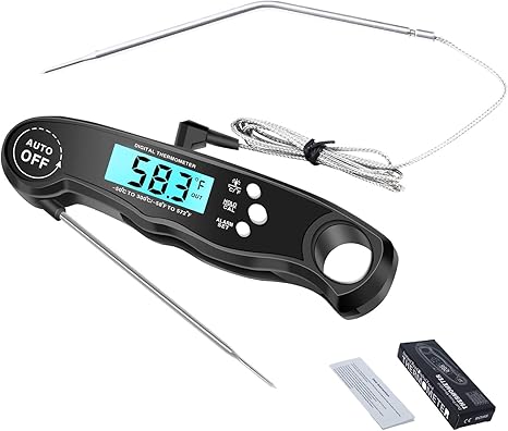Details: DRHLWZN Meat Thermometer, Instant Read Digital Food Thermometer for BBQ Grill Kitchen Outdoor Cooking Smoker Oil Deep Fry with Upgraded Dual Probe Alarm Set Waterproof (Black)