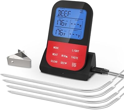 - 1 Details: Meat Thermometer for Grilling, Wireless Remote Thermometer Digital Cooking Food Thermometer with 4 Stainless Steel Probes, Clock Timer for BBQ Smoker Oven Kitchen