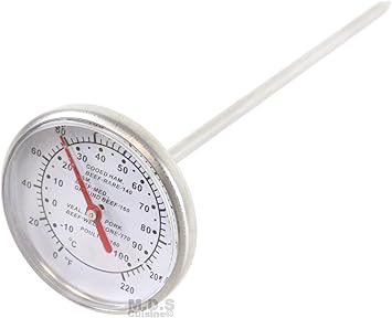 - This Thermometer is Perfect for Meats, Poultry, Yeast Doughs and great use for Chocolate Tempering. Fast, Accurate and easy to read, you may use this Thermometer for foods cooked in Conventional or Microwave ovens alike, on the Grill, Rotisserie, fresh out of the Fryer and/or Smoke Ovens.
